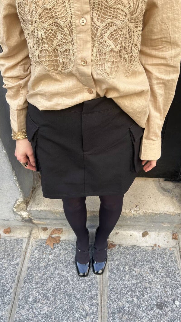The Yvonne skirt stands out with its short, structured cut that creates a confident and modern silhouette.
