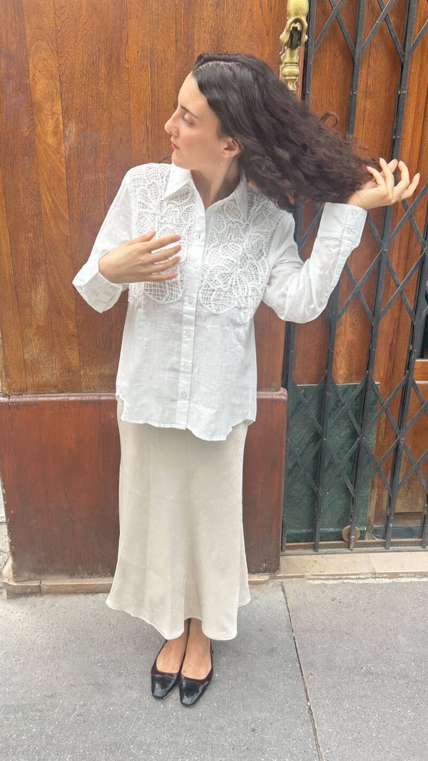 “Timeless and fluid. I love the way it falls and the neutral tone goes with everything. Parisian and effortless.”