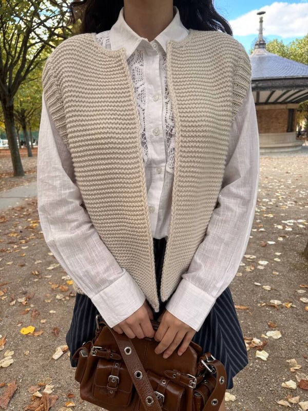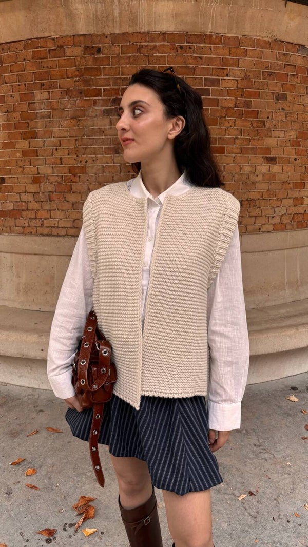 The Éloïse off-white vest is knitted in a soft textured stitch, bringing light and elegance to any outfit.